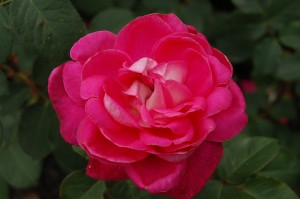 HYBRID TEA; CHERRY RED/SILVERY PINK