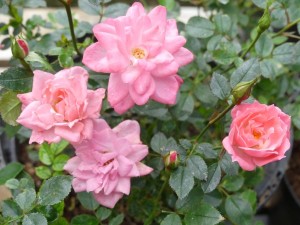 Pretty miniature rose of orange-pink. Height to 30cm.