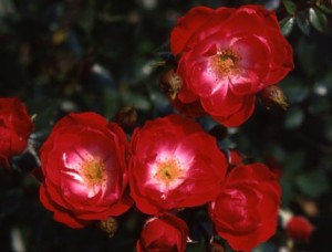 Little Buckaroo is an attractive miniature rose, bred by legendary US rose grower Ralph Moore in 1956, which produces fresh apple-scented, double bright red flowers all season long. Medium fragrance. Height 45cm.
