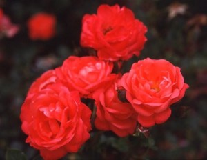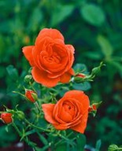 A little dazzler, bright scarlet/orange blooms on a repeat flowering plant. Will reach approx.35cm. Light fragrance.