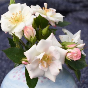 Twiggy growth which holds aloft plenty of elegant, pointed semi-double blooms in a pearly white colour. Extremely elegant. Flowers prolifically all season long. Reaches 45cm.