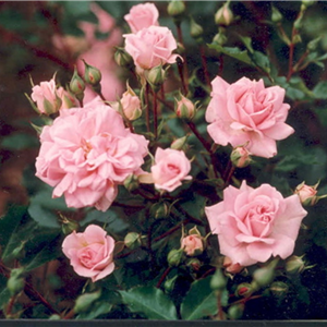 Soft, fragrant, shell pink, cupped blooms are borne throughout summer and autumn. It is a prostrate plant with a neat, mounding habit, reaching 60cm high and 90cm wide. Disease-resistant and an excellent ground cover variety.