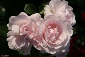 Pastel pink old-fashioned shaped flowers have an exceptional citrus and classic rose scent. The shrub is large with slightly arching canes. Very floriferous and disease resistant. Also known as First Crush and bred by Kordes of Germany.